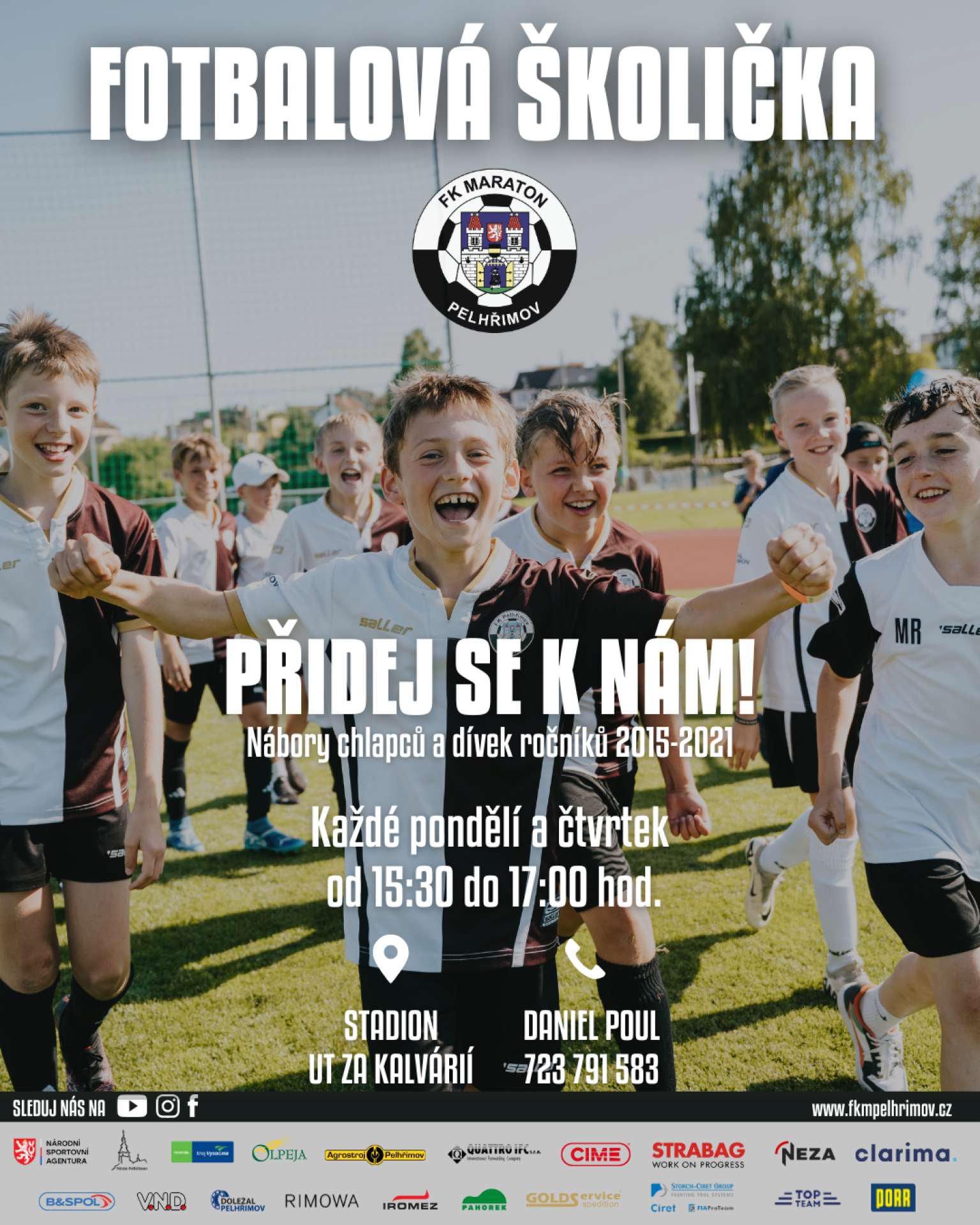 Šéftrenér fotbalové školičky FK Maraton Pelhřimov (ročníky 2018-2021): Daniel Poul – tel.: 723 791 583