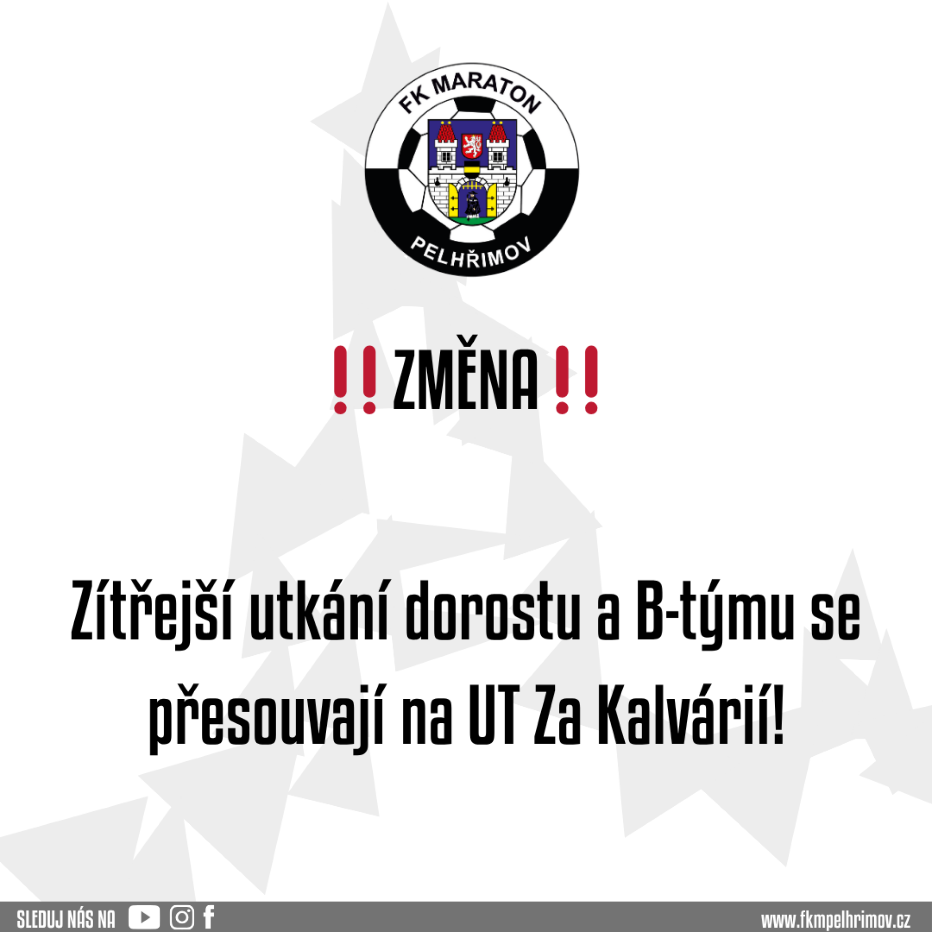 Sobotní utkání dorostu se kvůli počasí a kvalitě hřišť přesouvá na UT Za Kalvárií. Občerstvení bude otevřené.